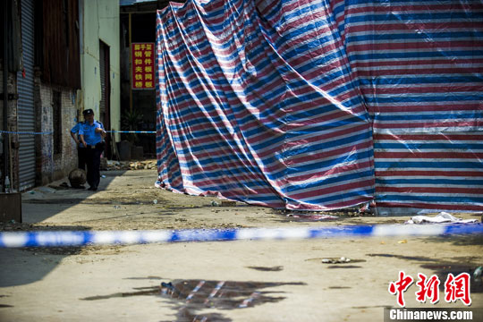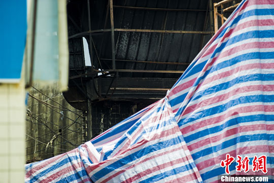 5月24日凌晨5时许,广东佛山南海区一家汽修厂突然发生火灾,目前事故已造成9人死亡。经初步核查,发生事故的单位为一汽车维修中心,过火面积96平方米,死亡的9人当中包括3名男孩。目前,事故现场已被封闭。中新社发 龙宇阳 摄