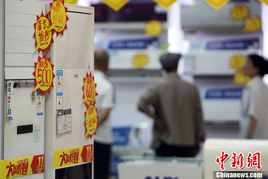 5月24日,部分太原市民前往商场购买空调。随着高温来袭,前往商场、超市选购电风扇和空调等各种降温产品的市民也多了起来,不少商场趁此开始搞促销。中新社发 张云 摄