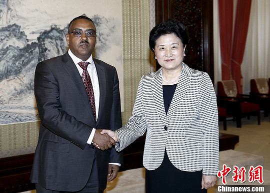 5月24日,中国国务院副总理刘延东在北京中南海紫光阁会见埃塞俄比亚副总理兼教育部长德梅克。中新社发 杜洋 摄