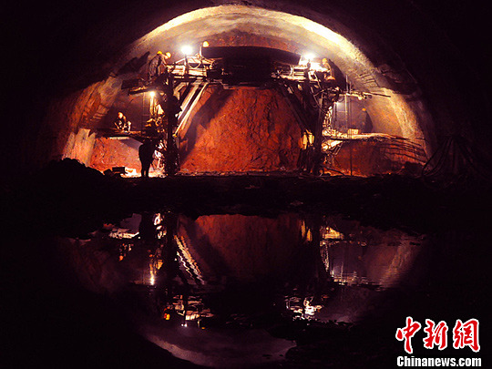 5月24日,世界第一高海拔高速铁路隧道——兰(州)新(疆)铁路第二双线祁连山隧道施工掘进突破6000米大关,取得重大进展。中新社发 罗汀 摄