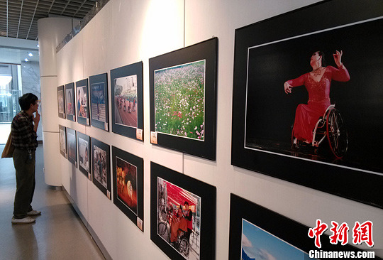 5月24日,民众在参观闽台残疾人士摄影作品展。2013年闽台残疾人士摄影作品在福州展出,本次共有177幅作品参展,其中台湾作品20余幅。中新社发 吕明 摄