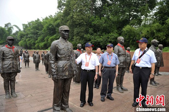 6月17日,前来参加第七届黄埔论坛的两岸黄埔同学、各地黄埔组织代表、及知名黄埔后裔、有关专家学者等一行90余人,在成都建川博物馆缅怀抗战先烈,共忆沉痛历史。嘉宾们参观了正面战场馆、飞虎奇兵馆、不屈战俘馆、川军抗战馆和中国老兵手印广场。
