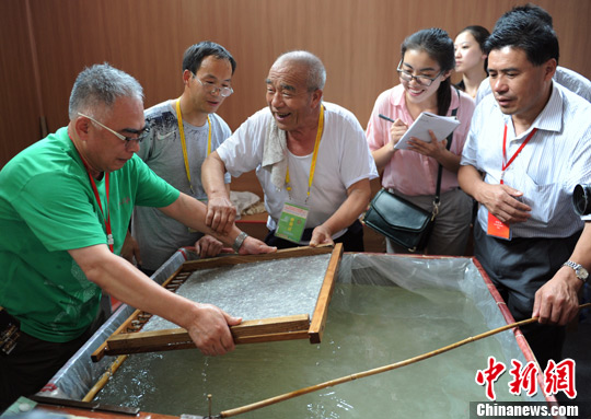 海外华文媒体记者聚焦成都“非遗节” 现场学制纸
