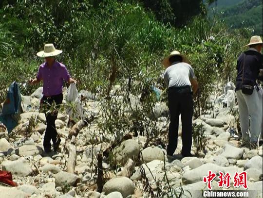 图为“保洁队”清理北仑河沿岸垃圾。翟李强 摄