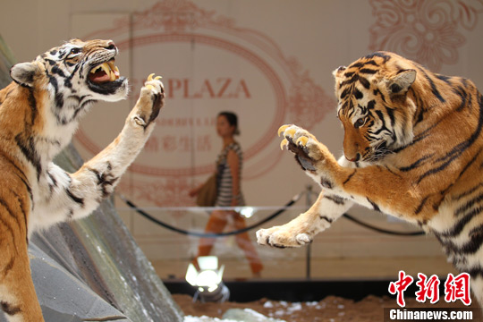 南京举办猫科动物标本展 狮子老虎栩栩如生