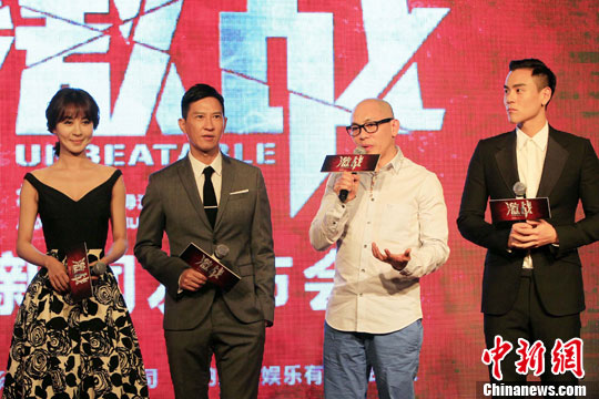 6月18日,香港导演林超贤执导的动作电影《激战》剧组,在上海国际电影节举行新闻发布会,该影片是角逐电影节金爵奖的热门。中新社发 潘索菲 摄