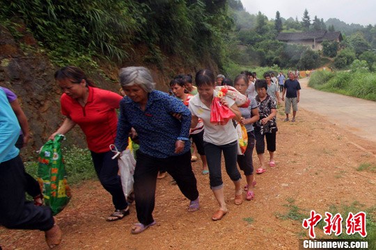村民扶老携幼撤往临时安置地点。卫纲 摄