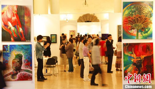亚洲画廊艺术博览会-上海海派艺术精品展6月下旬在上海展览馆开幕,汇聚了来自中国、韩国、日本、新加坡等国内外30多家亚洲画廊的600多件艺术精品。中新社发 袁婧 摄