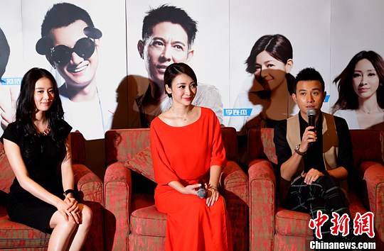 6月28日,演员文章(右)、刘诗诗(左)、柳岩来到江苏南京,为他们主演的喜剧电影《不二神探》做宣传并前往影院与影迷见面互动。中新社发 泱波 摄