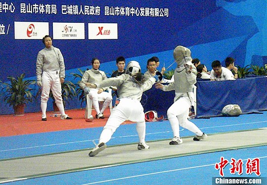 图为女子佩剑团体赛比赛瞬间。黄莹 摄
