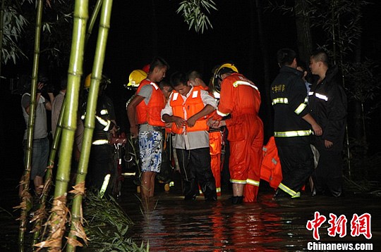 杭州暴雨致景区受涝3人被困江心 警方连夜营救(2)