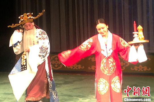 7月4日下午,石家庄丝弦剧团的演员们在35℃的高温下,身着厚重的戏服全心地投入排练。中新社发 翟羽佳 摄