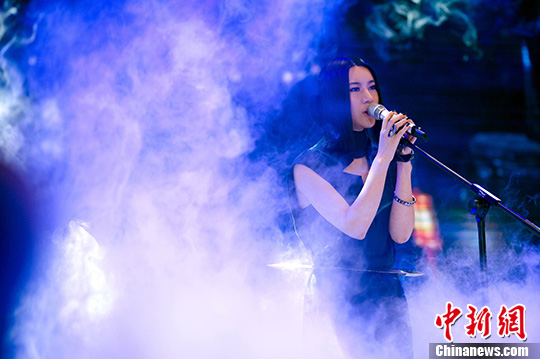 7月4日,歌手尚雯婕亮相北京,为其担任代言人、音乐总监制的网游《画皮世界》公测发布会助阵。中新社发 李学仕 摄