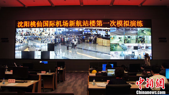 7月5日,新航站楼TOC指挥室。当日,早8时20分,沈阳桃仙国际机场进行了新航站楼旅客进出港流程首次模拟运行演练。中新社发 李依枚 摄