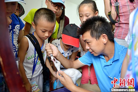 8月6日上午,15位6-10岁的小朋友们来到无锡市动物园参加第三届“小小动物学家暑期夏令营”,本次活动中小营员们参观了动物厨房、动物医院,还见到了神秘的火烈鸟宝宝,上了一节鸟类的趣味科普知识大课堂。