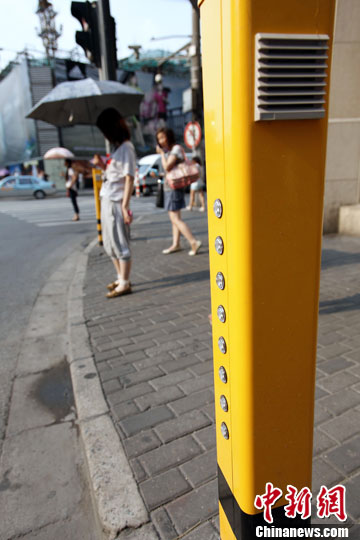近日,“交通安全语音提示桩”在上海南京路步行街亮相。每当红灯亮起,超越提示桩的行人便会听到“您已红灯越线”的提示音,示意行人后退至安全区域。目前在南京东路、河南路口,交通安全语音提示桩共安装有十二根,与红绿灯同步,通过自动发出的语音提示,引导行人安全过马路。