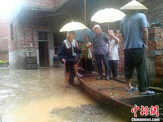 道县蚣坝镇干部正在用小铁船紧急转移群众。程任重 摄