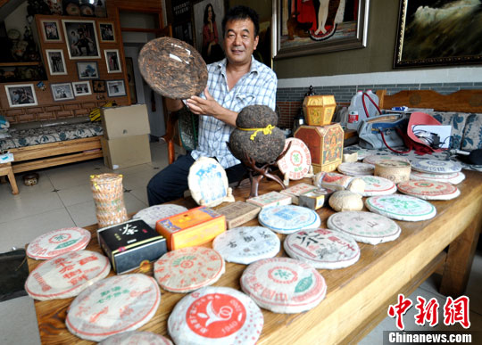 中新网邯郸9月4日电(马继前)河北省邯郸市市民治春晨今年51岁,受父亲的影响,从七、八岁时就开始萌生收藏普洱茶的爱好,如今他收藏的普洱茶大约有两吨。