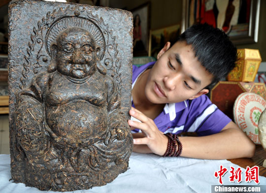 图为治春晨收藏的黄金版大佛普洱茶。 马继前 摄
