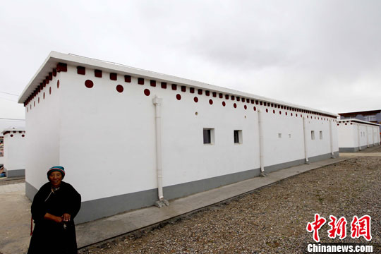9月3日傍晚,78岁的藏族老人月拉在院子里散步。中新社发 胡友军 摄
