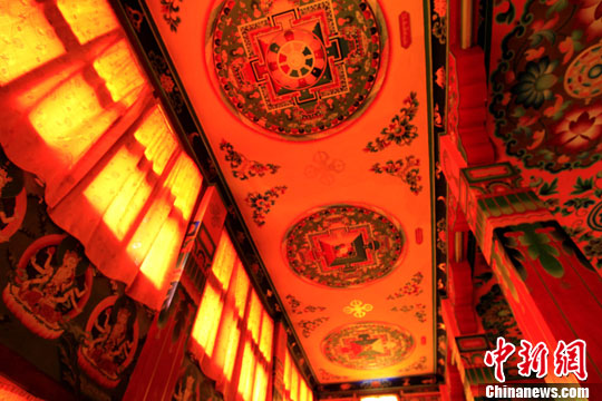 贡萨寺内精美的坛城壁画。中新社发 胡友军 摄