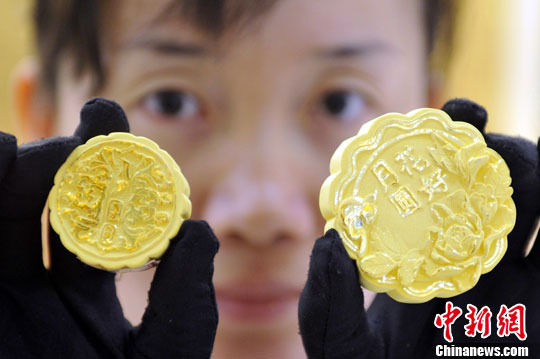 与去年各大金店纷纷挂海报宣传销售“黄金月饼”不同,今年山西太原多家金店在宣传力度上有所收敛,黄金月饼被摆在柜台不起眼的位置,低调上市。