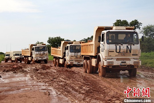 日前,中国第十一批赴南苏丹瓦乌执行工程保障任务的维和部队官兵,完成了向南苏丹北加扎勒河州阿维尔任务点的部署。中新社发 郭如生 摄