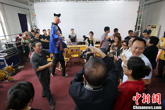 9月4日,来自13个国家16个华文传媒机构高层一行在有着“皮影之乡”的山西孝义,亲身体验了古老的皮影戏与木偶戏。中新社发 张云 摄