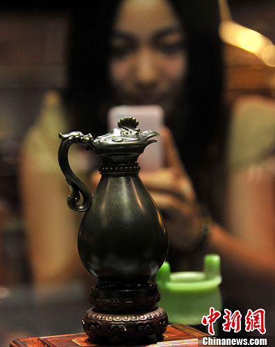 图为参展的凤首龙柄玉壶备受青睐。中新社发 孙自法 摄