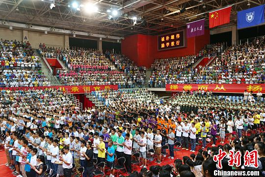 9月4日,南京大学大一新生在学校体育馆内参加在2013级本科生开学典礼,校长陈骏就不久前成为社会舆论关注焦点的大学寝室同学间的情感纠葛寄语新生:育善心、出善言、行善道。近日,全国各高校2013级新生陆续赴学校报到,来自天南海北的莘莘学子、一个个“95”后至“00”后青春身影怀揣梦想,开始书写青春。