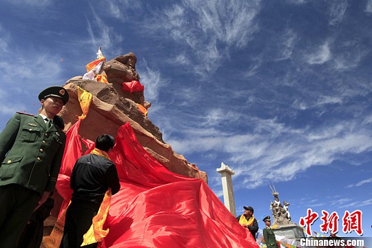 9月5日中午,“环保卫士”索南达杰纪念雕像在海拔4767米的昆仑山口落成。中新社发 胡友军 摄