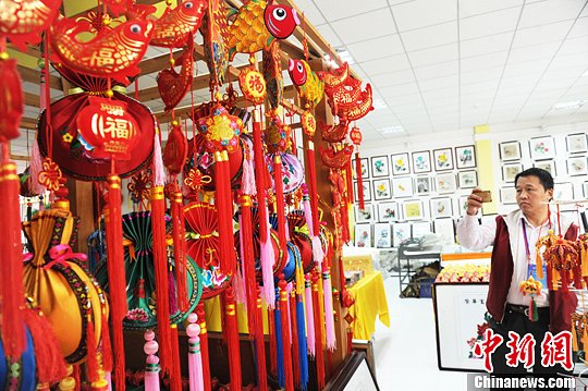 9月5日,来自17国的海外华文媒体采访团参访甘肃庆阳独具特色的刺绣香包作坊。中新社发 杨艳敏 摄