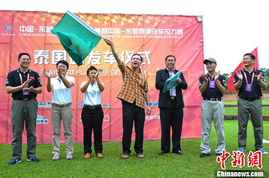 9月10日,2013中国-东盟国际汽车拉力赛在泰国素可泰举行发车仪式。图为中泰双方进行发车仪式。中新社发 洪坚鹏 摄