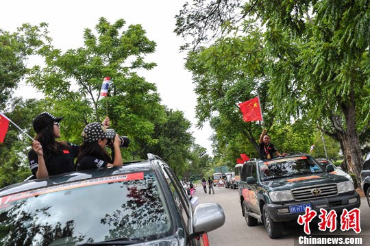 9月10日,2013中国-东盟国际汽车拉力赛在泰国素可泰举行发车仪式。中新社发 洪坚鹏 摄