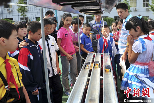 9月13日,农家娃组装太阳能车模竞速。中新社发 张勇 摄