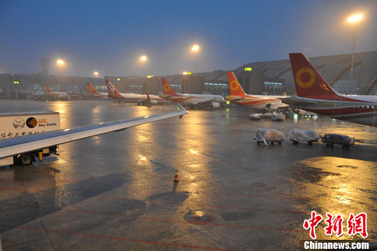 从9月18日早上05:06开始至07:30,成都双流机场遭遇雷雨天气袭击。中新社发 吕俊明 摄