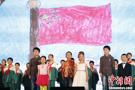 9月17日晚,2013“诗意中国”中华世纪坛中秋国际原创诗会在北京举行。图为孩子们朗诵的《我心中的祖国》。中新社发 杜洋 摄