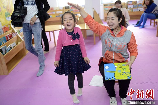 图为孩子们和老师做游戏。中新社发 刘文华 摄