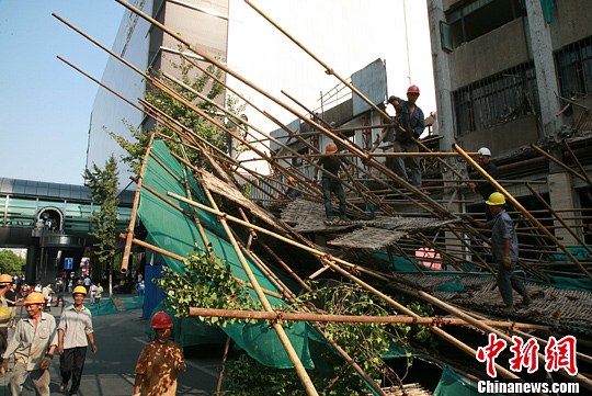杭州某大厦施工脚手架坍塌 未造成人员伤亡