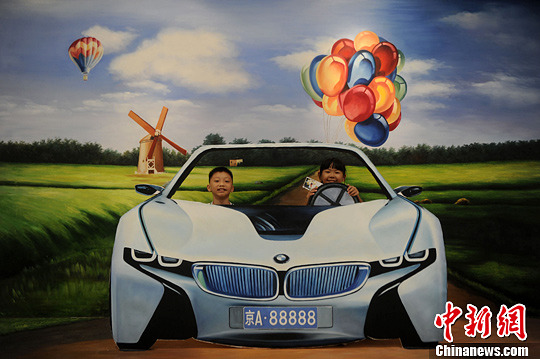 图为孩正在3D艺术画上玩耍。陈超 摄