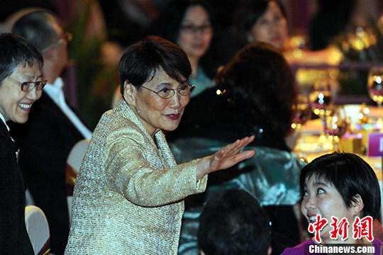 9月23日晚,“2013年度邵逸夫奖”颁奖礼在香港会展中心举行。图为邵逸夫太太方逸华出席颁奖礼。 中新社发 谭达明 摄