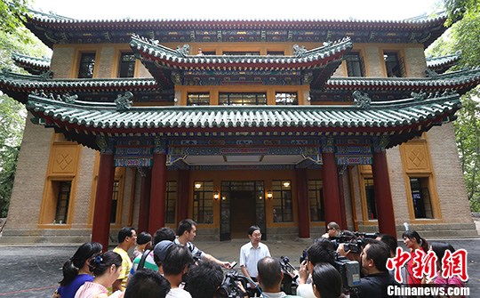 9月23日,游客在新修缮完工的明孝陵东侧定林山庄的“刘勰与文心雕龙纪念馆”内参观。中新社发 泱波 摄