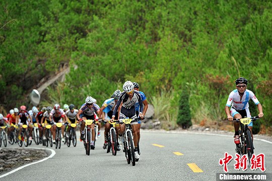 图为自行车选手在山区公路上骑行。刘占昆 摄