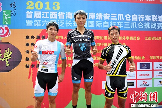 图为来自中国上海的选手丁勇(中)、中华台北选手朱梵心(左)、中国浙江选手陈金波分获冠亚季军。 刘占昆 摄