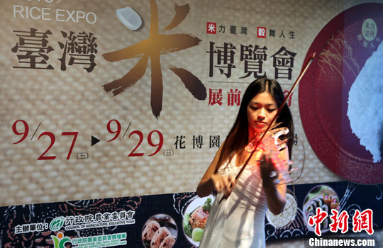 9月24日,台湾“农委会”举行“2013台湾米博览会”记者会。图为美女乐手在记者会上助阵。陈立宇 摄