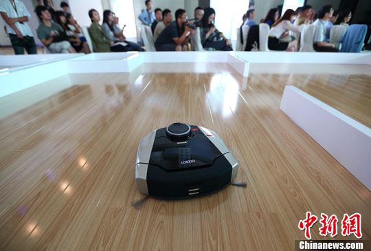 9月24日,新一代高端智能地面清洁机器人——科沃斯地宝九系在南京亮相,激光扫描、全局规划、记忆识别、手机掌控等,为人们呈上全新的地面清洁方式和更为智能的居家生活体验。中新社发 泱波 摄