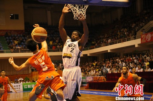 图为璞园建筑队员上篮。中新社发 王刚 摄