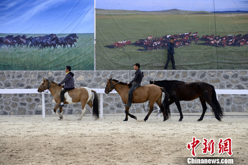 9月25日,在内蒙古锡林浩特举行的第二届中国马术大赛进入第三日的赛程,三项越野障碍赛受到关注。中新社发 刘文华 摄