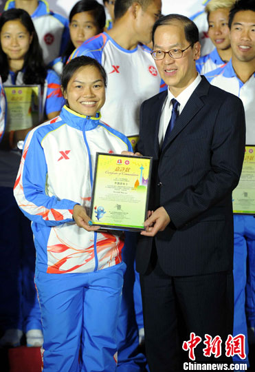 组图:全运会香港代表团返港欢迎仪式举行(3)