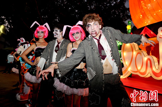 现场吸引了大批“哇鬼”游客前往参与华南最大鬼“趴”盛会。中新社发 刘卫勇 摄